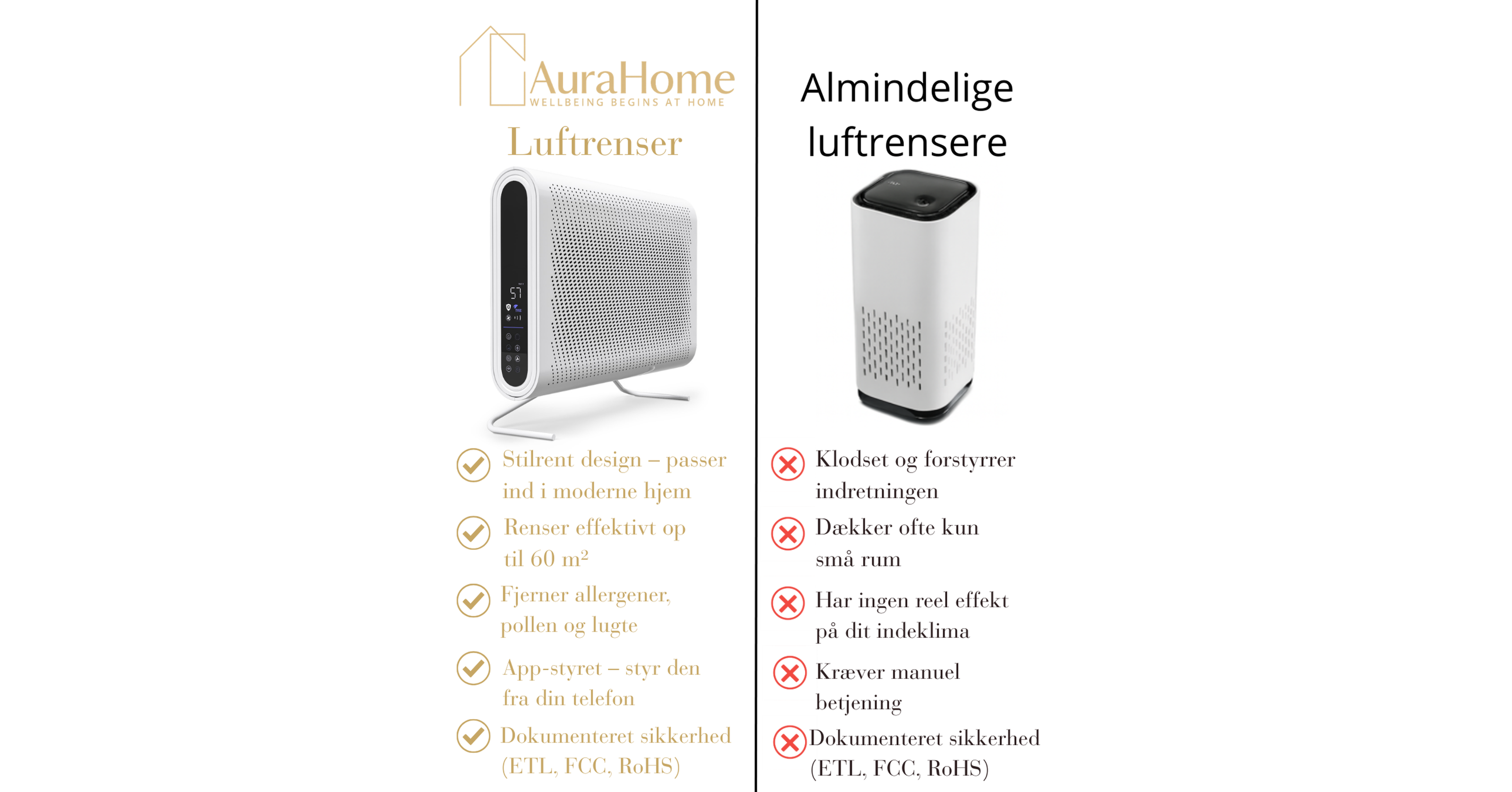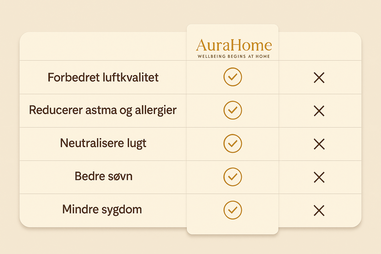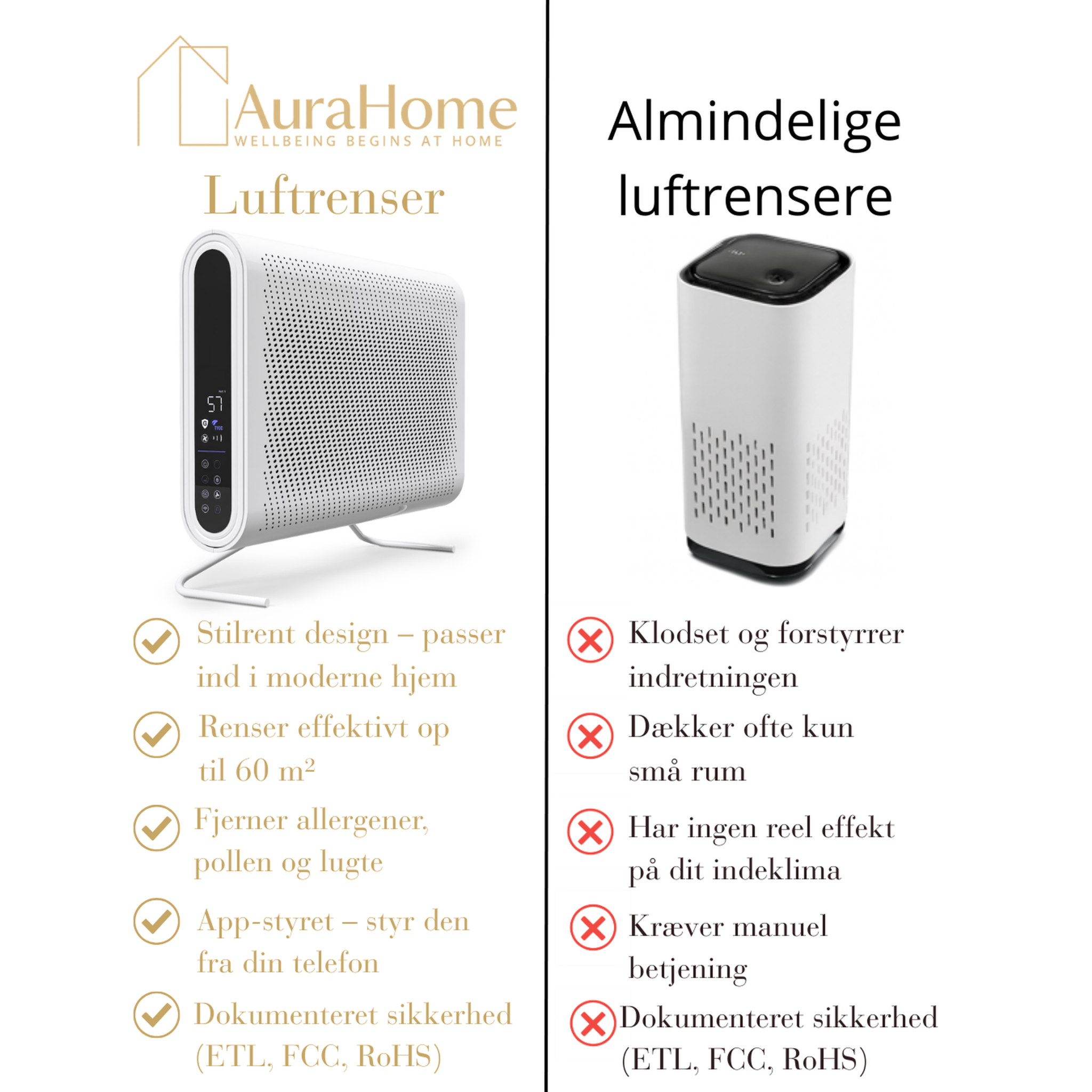 Mange oplever træthed, hovedpine eller allergi uden at tænke over, at det kan skyldes dårlig luftkvalitet indendørs. Med en Aurahome luftrenser fjerner du nemt de partikler og kemikalier, der forringer luften, så du får mere energi, bedre søvn og færre gener i hverdagen.