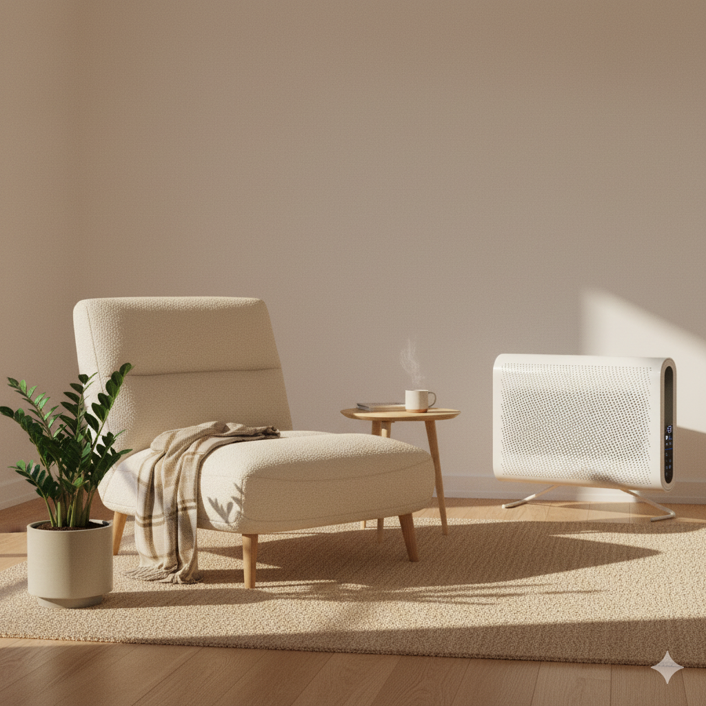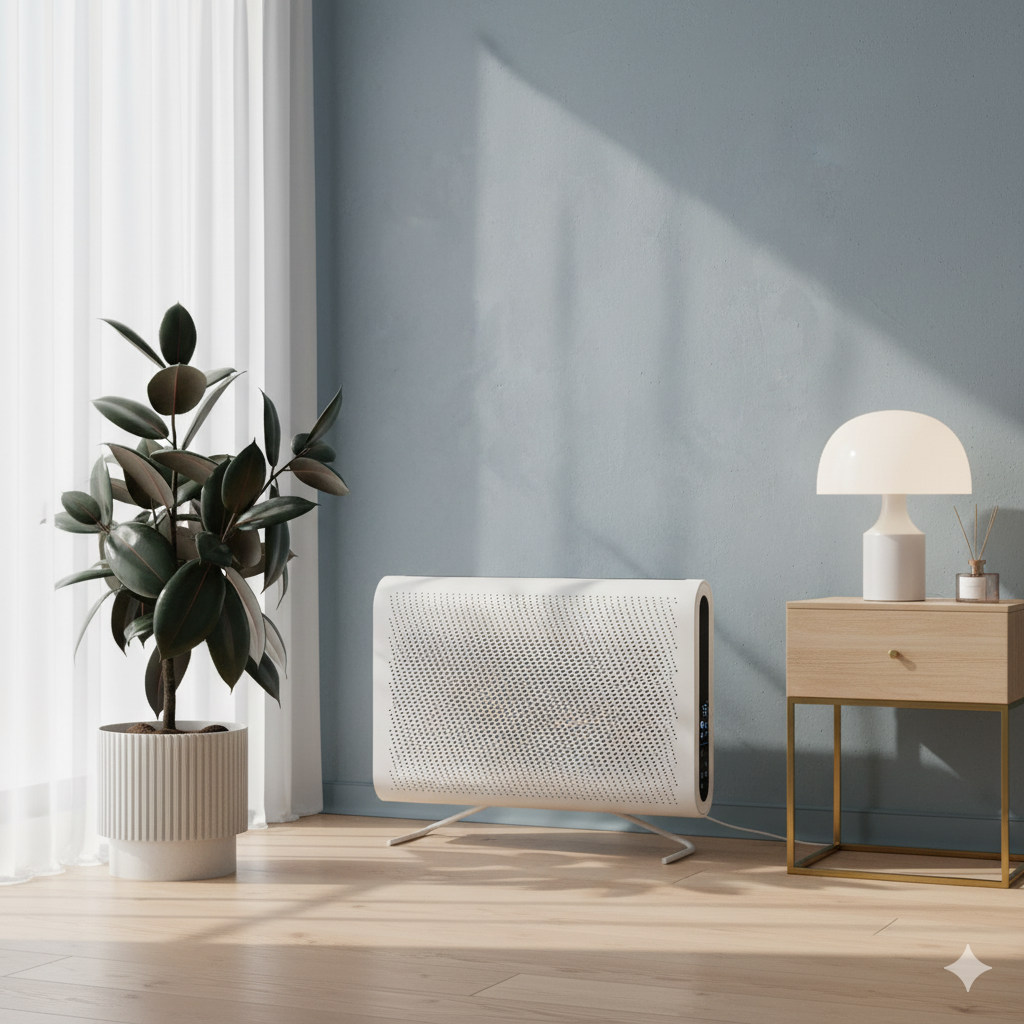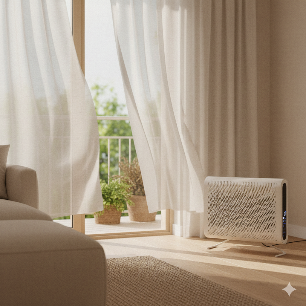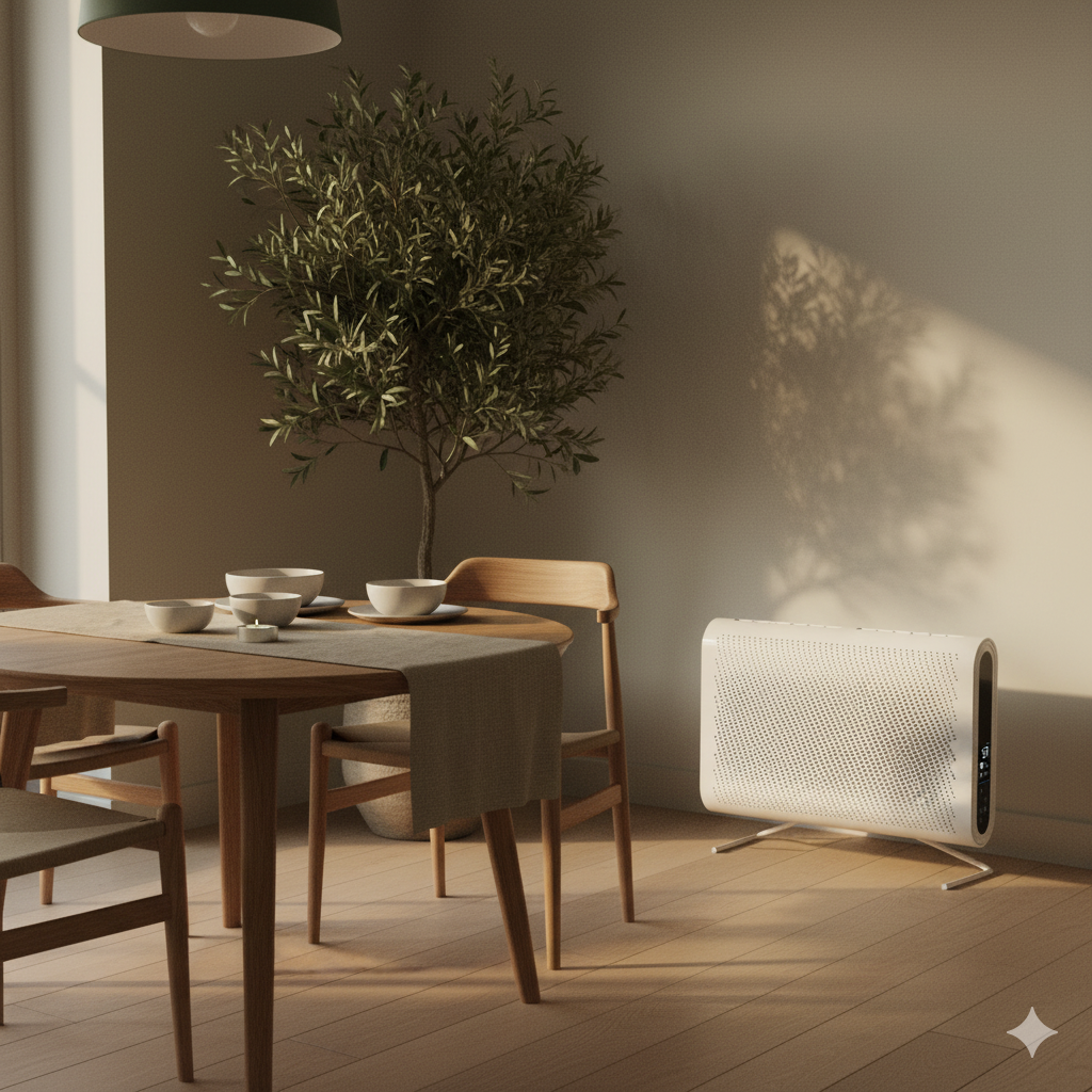Du sætter dig for at læse men luften føles stillestående. AuraHome cirkulerer nænsomt og fjerner fine partikler fra tekstiler og tæppe. Åndedrættet bliver roligt og tankerne falder på plads så pausen føles længere.